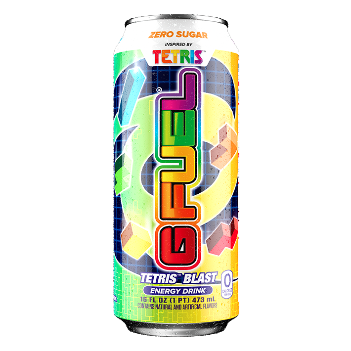 A rainbow of colorful tiles of all shapes and sizes! Cascading down! Faster and faster! The ultimate challenge of focus and wit! Will you crumble under the pressure? Of course not! Because you have “TETRIS BLAST”!!! The ultimate rainbow candy-tasting, ready-to-drink, high-performance G FUEL - Inspired by the iconic puzzle game- Tetris®!!!