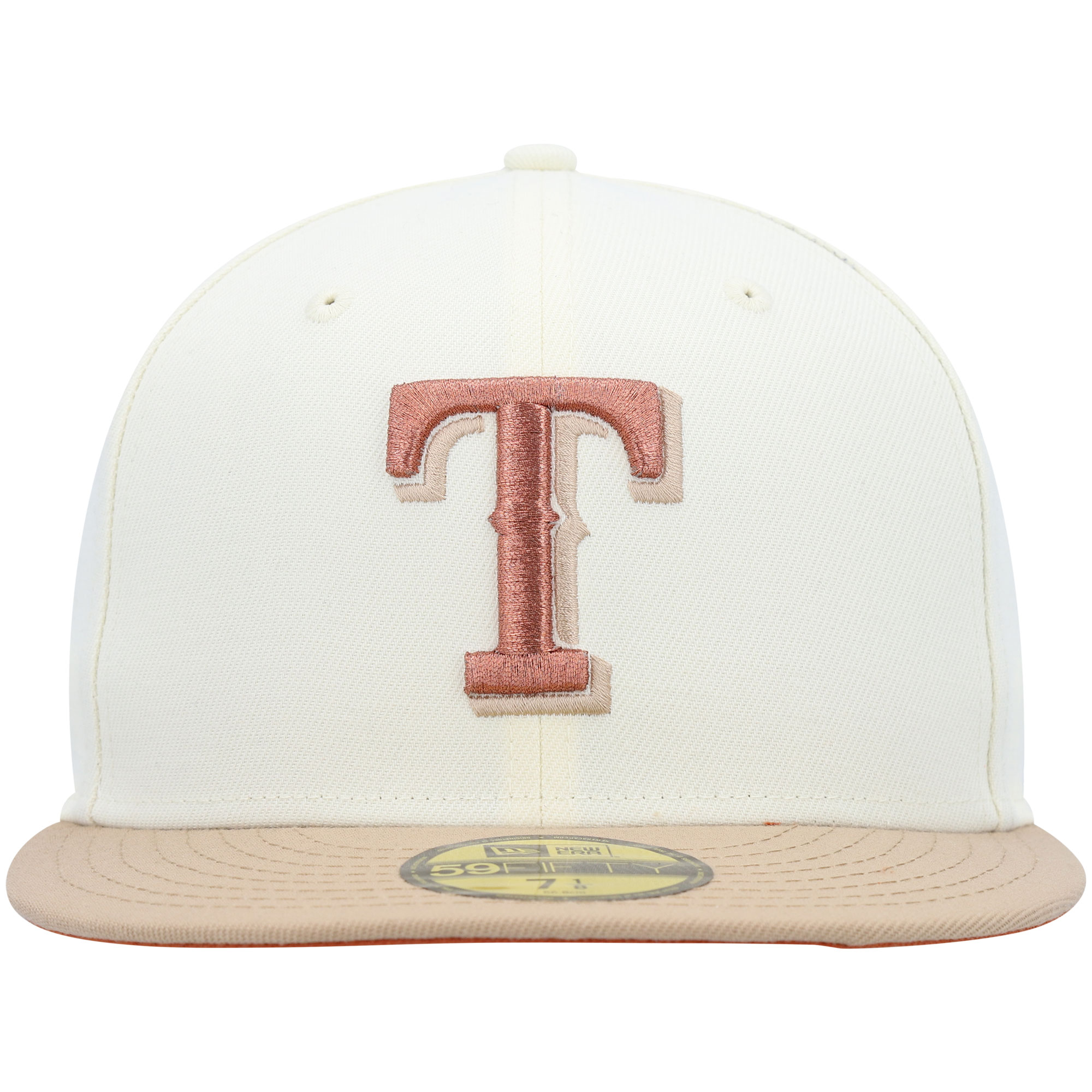 Top off any Texas Rangers look with this Chrome Camel 59FIFTY hat from New Era. It features bold team graphics and a contrast undervisor for added detail. The fitted design makes this Texas Rangers hat perfect for any look.