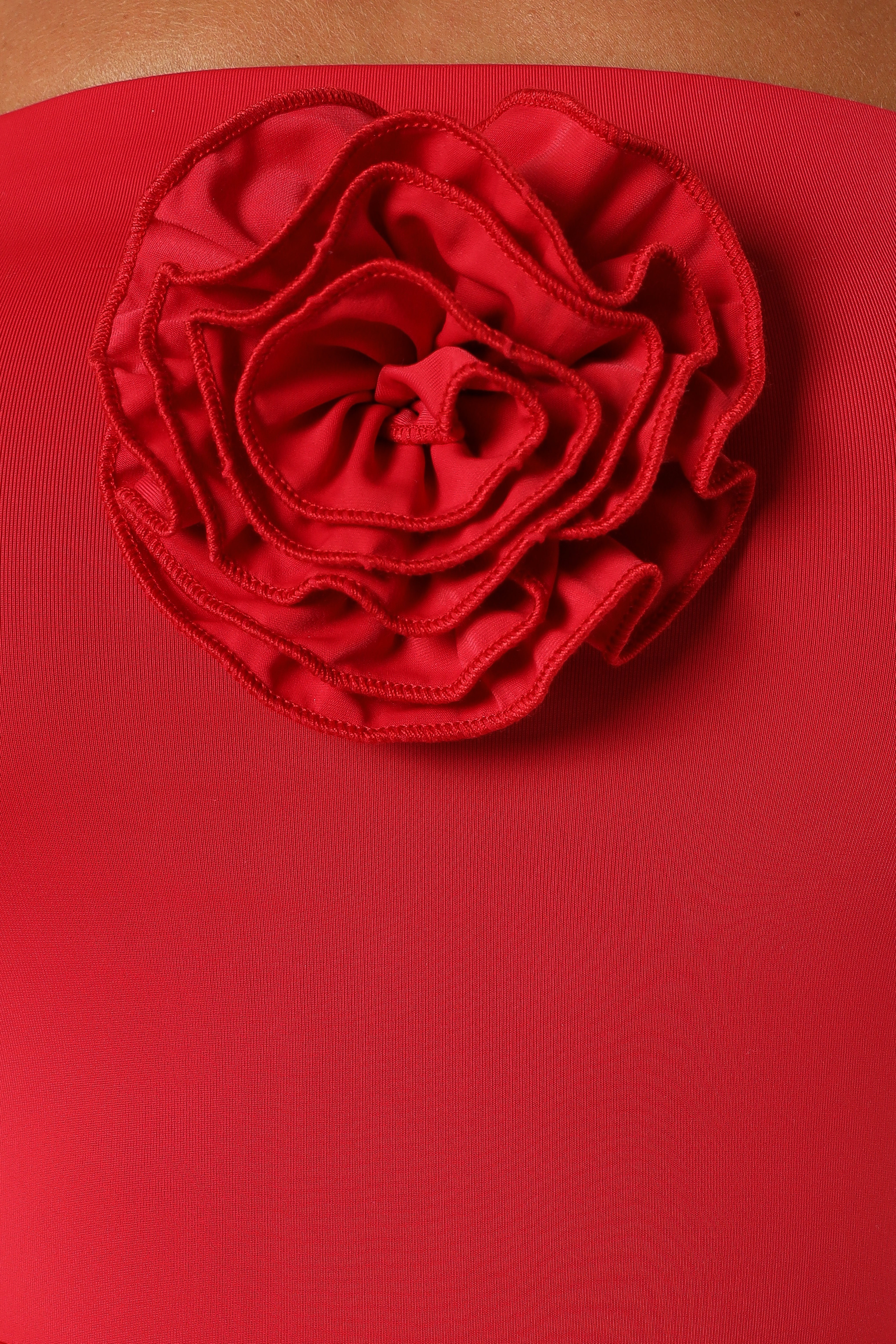 Put together a look that will have you turning heads with this beautiful strapless top and high-waisted midi skirt in one. The cropped length of the top is perfect for showing off your favorite jewelry or statement bag.