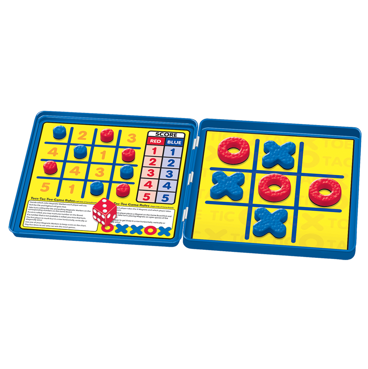 Contents: 6 X Magnets, 6 O Magnets, 10 Red Magnetic Markers, 10 Blue Magnetic Markers, Die, Magnetic Game Board, Rules