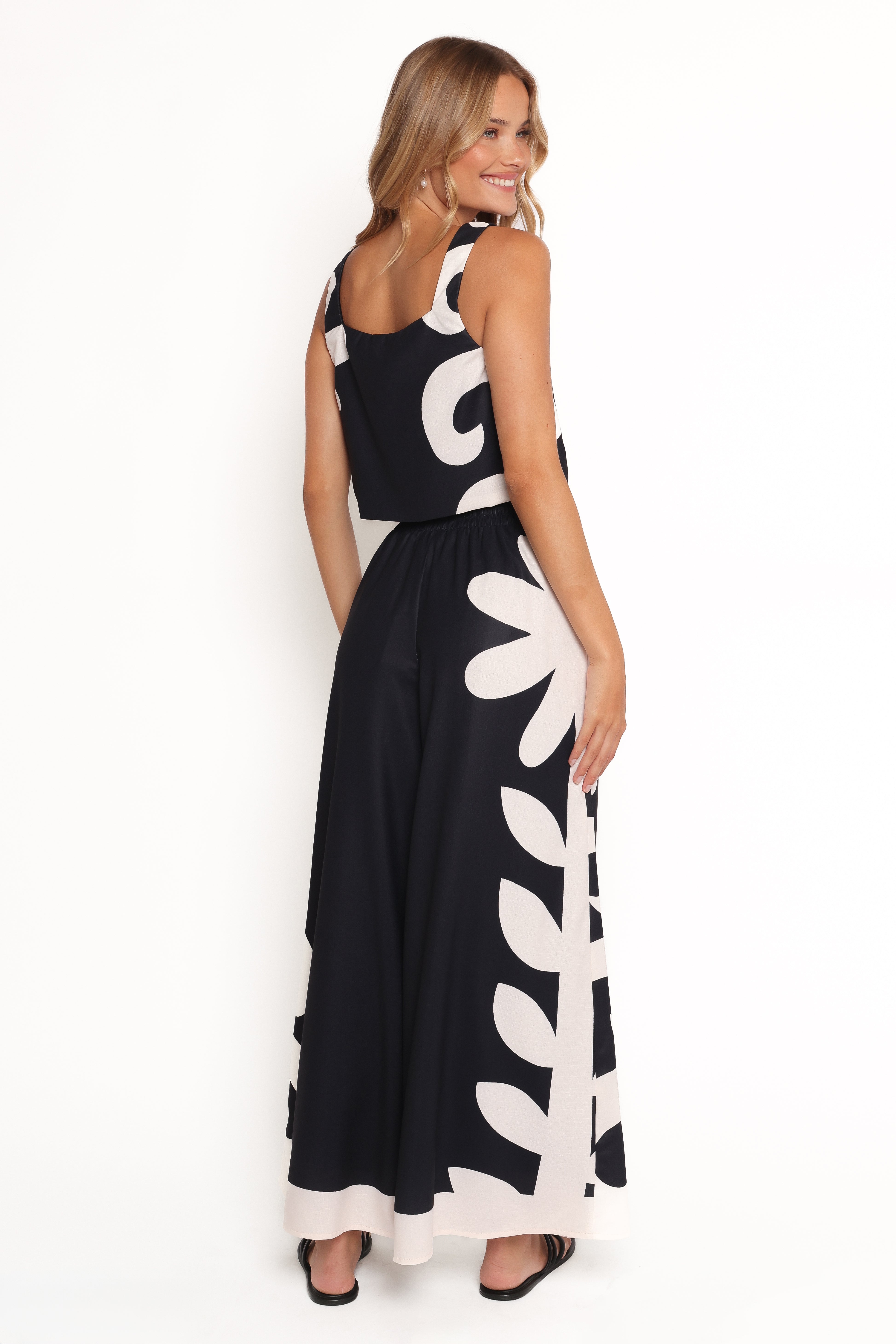 DETAILS Effortlessly blend comfort and style with the Timothy Pant Set in Black and Cream. This chic two-piece set features a cropped top with a sophisticated square neckline, creating a modern silhouette that pairs perfectly with the high-waisted pants.