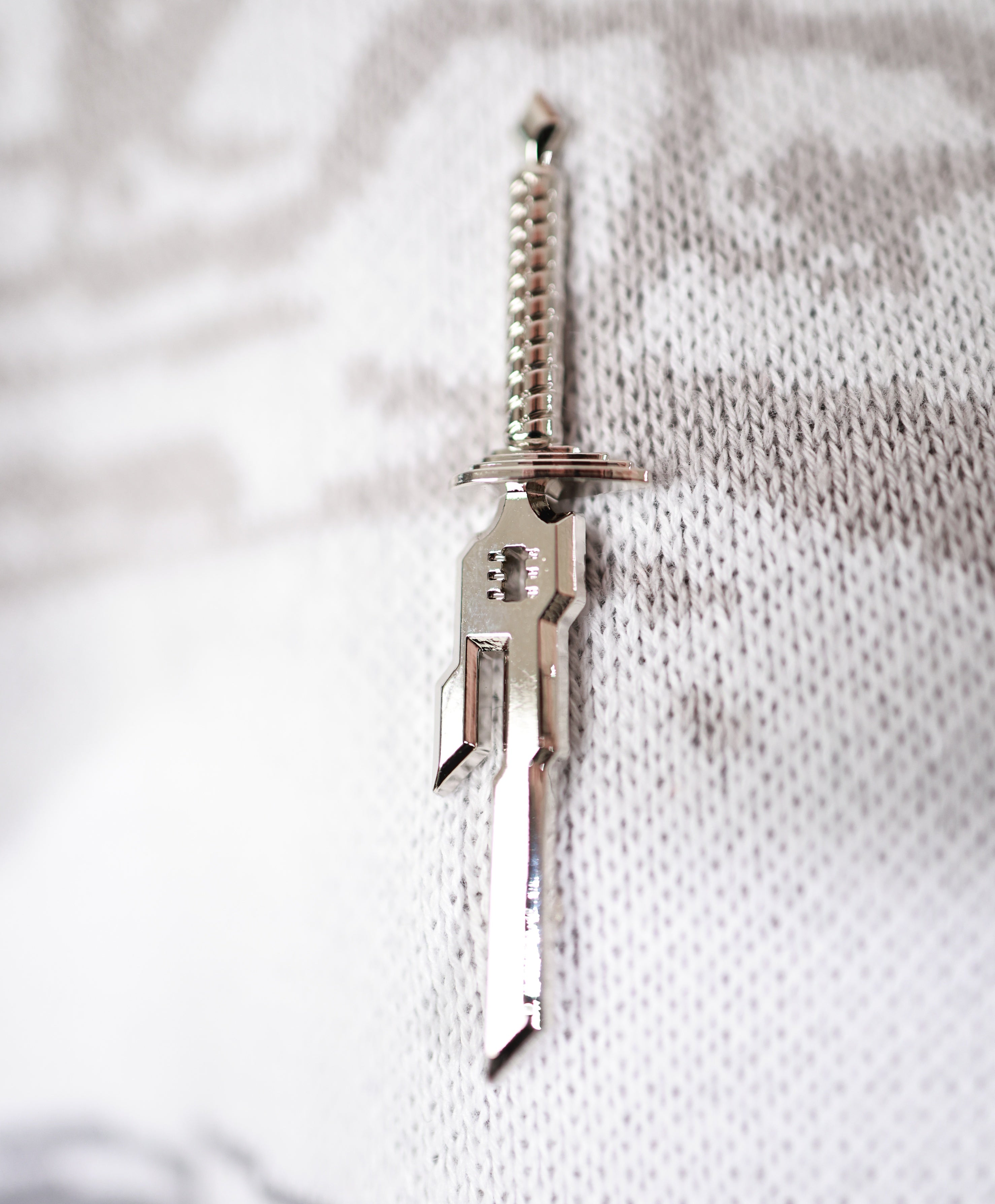 This whole collection features some of the most detailed embroidery & knit designs we have ever made. The design comes with a custom high quality metal pin that is inspired by Toji's sword. The fabric is made from jacquard knit and the highest quality 100% cotton yarns. Jacquard is a very high end manufacturing technique that retains color as good as embroidery while maintaining the softness of an item with no pattern. The patterns add a powerful touch inspired by Toji's attacks to the design. The design has the same shape as the sweater Toji was wearing in the show and is perfect to casually wear on the street. It is supposed to make you comfortable while standing out in a positive way.