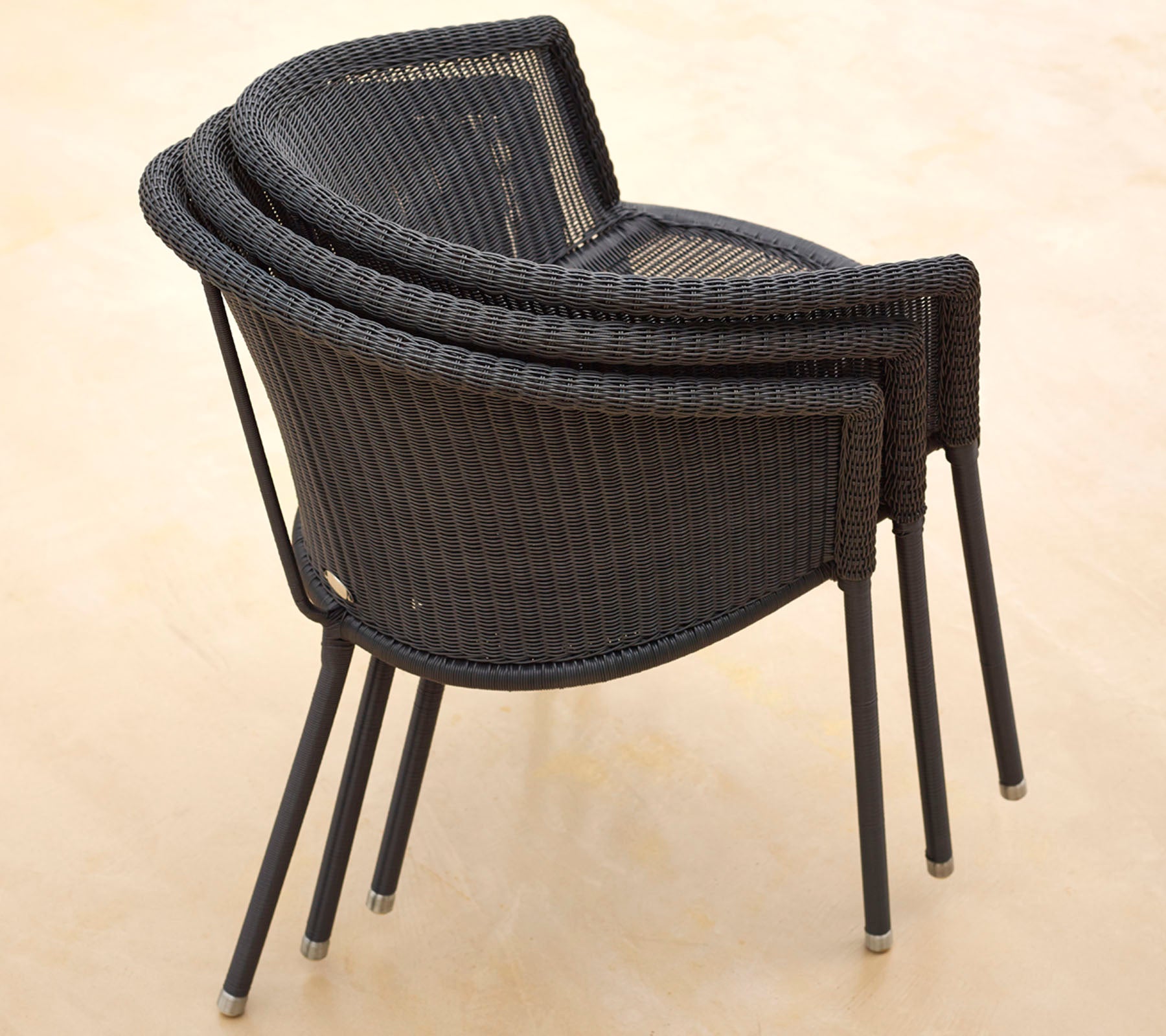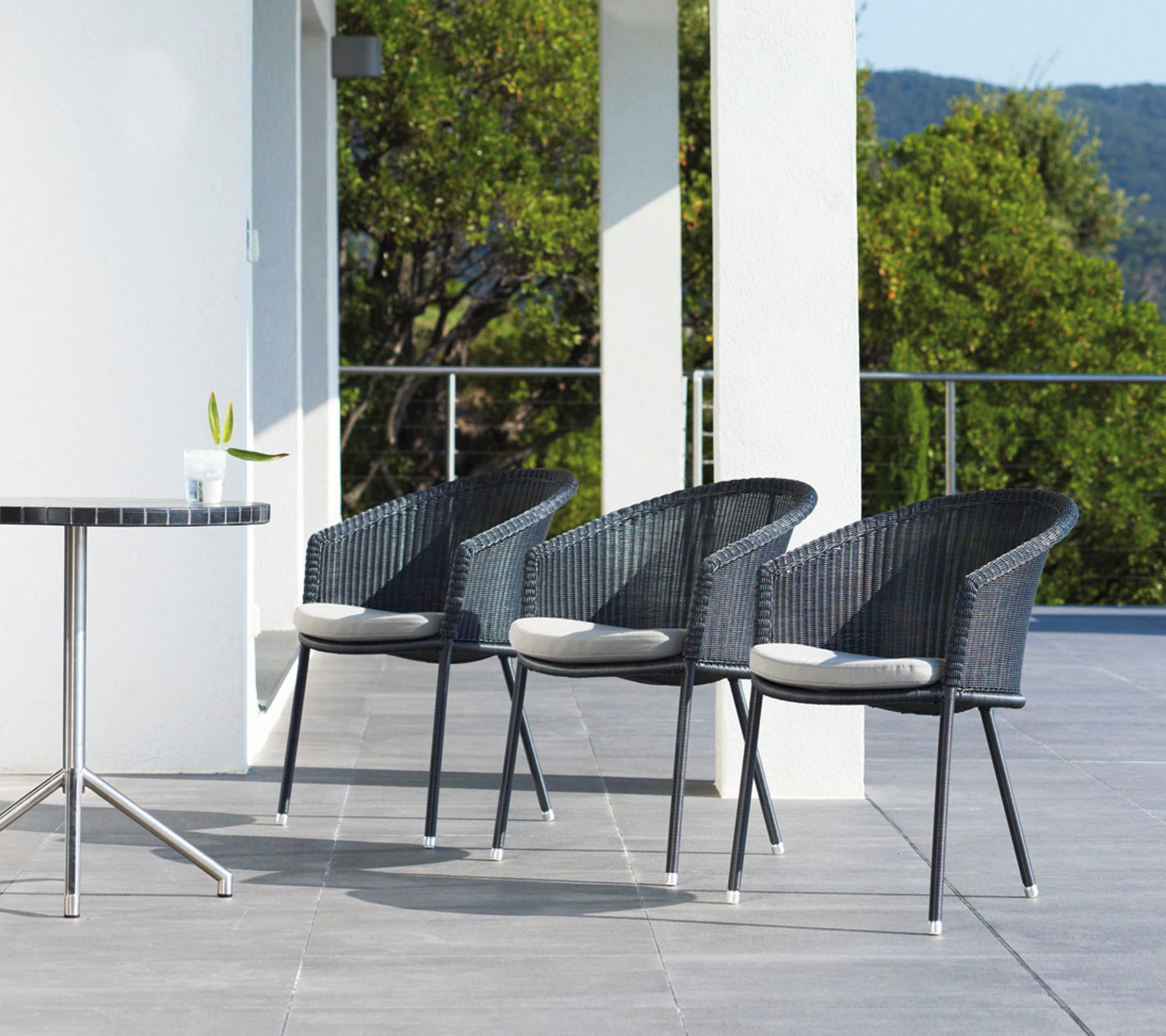 Trinity is Cane-lines offer for a simple, light and stackable chair. The chair is a complicated piece of craftsmanship that combines two features that are unusual together - 3 legs and stability. Trinity also distinguishes itself by tremendous comfort created by the elegant weave as well as the precise design of the chair’s seat. The garden chair is stackable and is made of materials that require a minimum of maintenance.