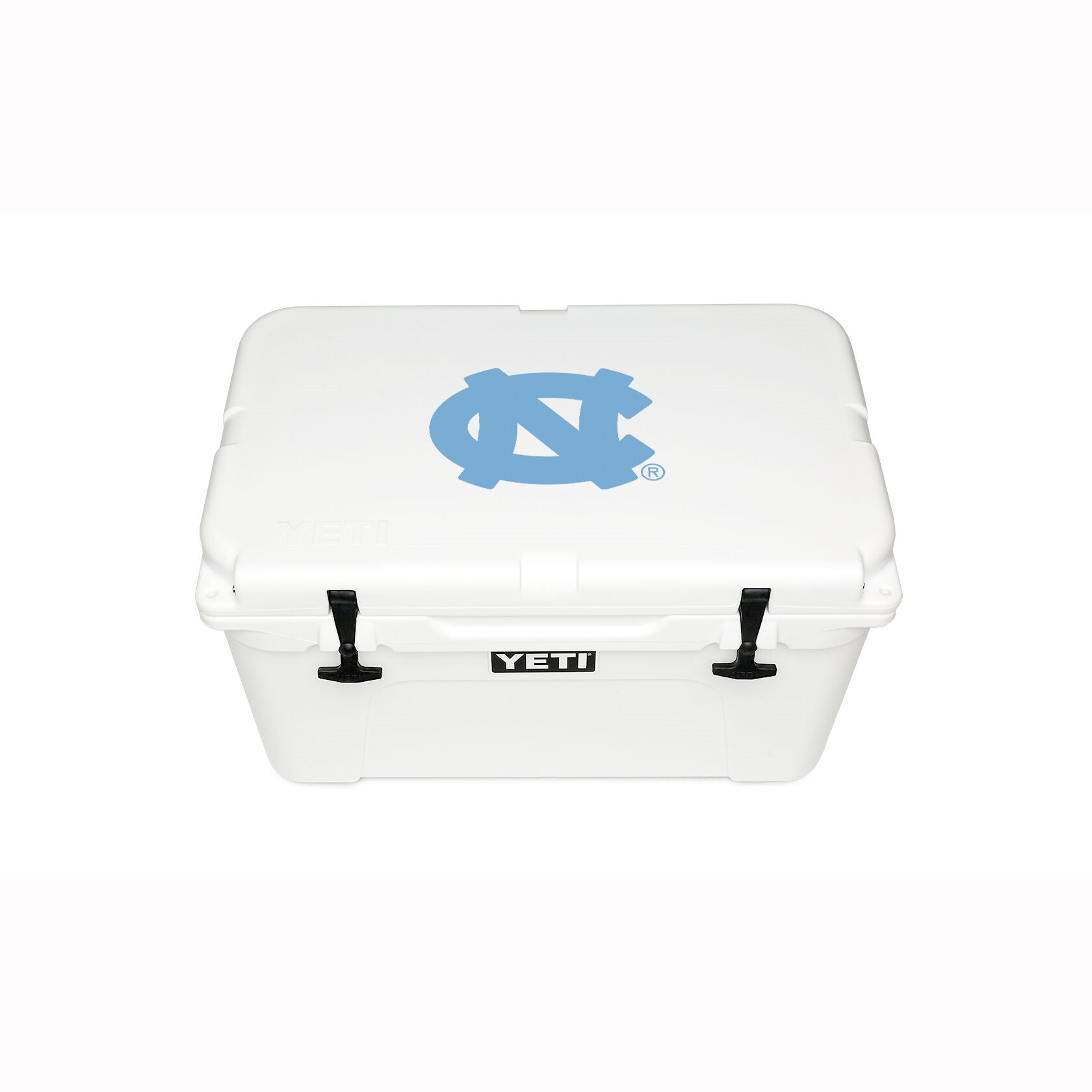 Give your YETI Hard Cooler a Tarheel touch. This officially licensed Carolina Blue and white logo is available to customize on the Roadie 24, Tundra 45, Tundra 65, and Tundra Haul Hard Coolers, as well as the YETI TANK 85 Ice Bucket.