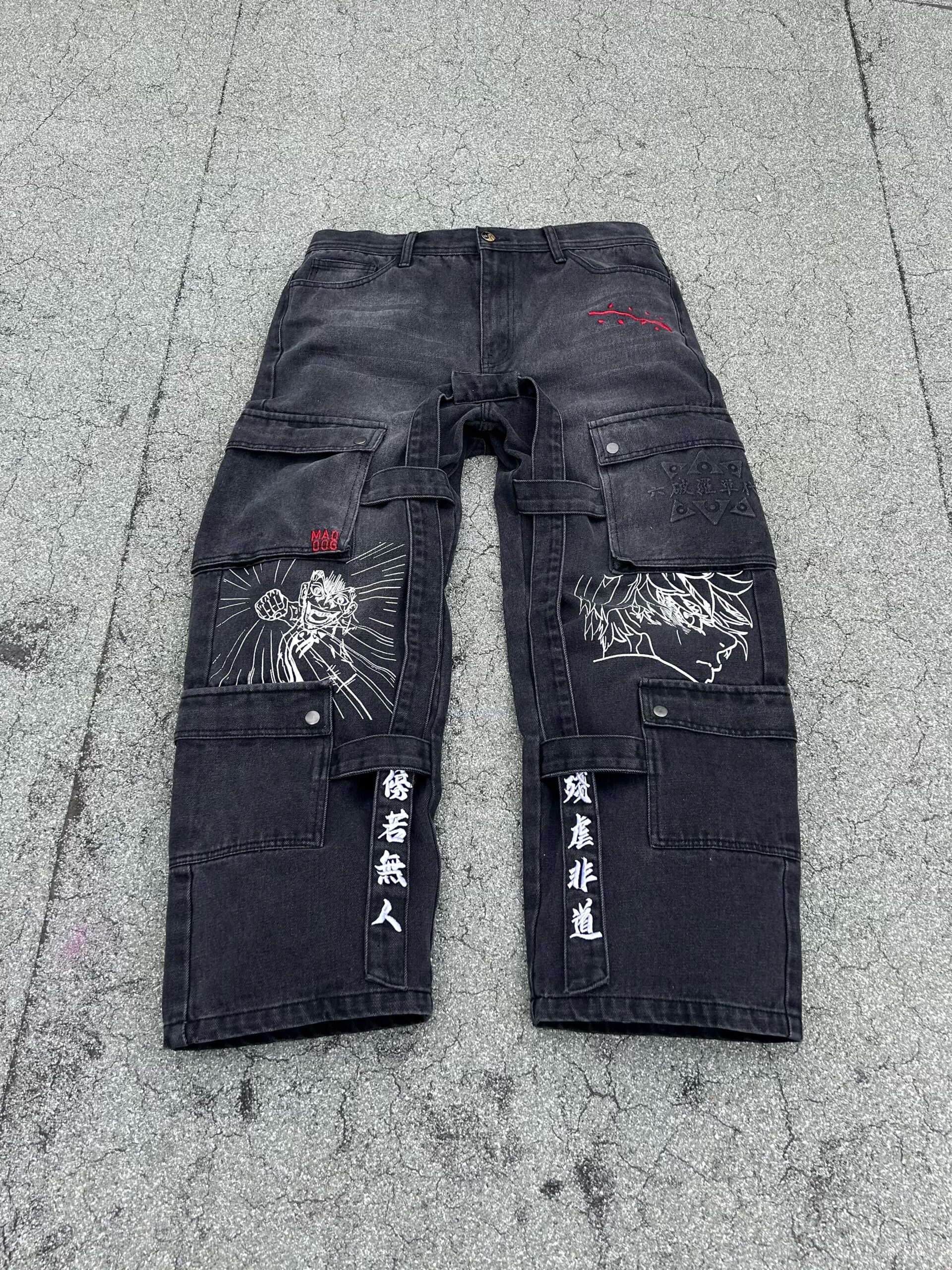 These pants are made of High-Quality Heavyweight Brushed Denim with screen-printed , puff print and embroidery designs on the front and back. Very comfortable and warm. It will keep the color bright for a long time.