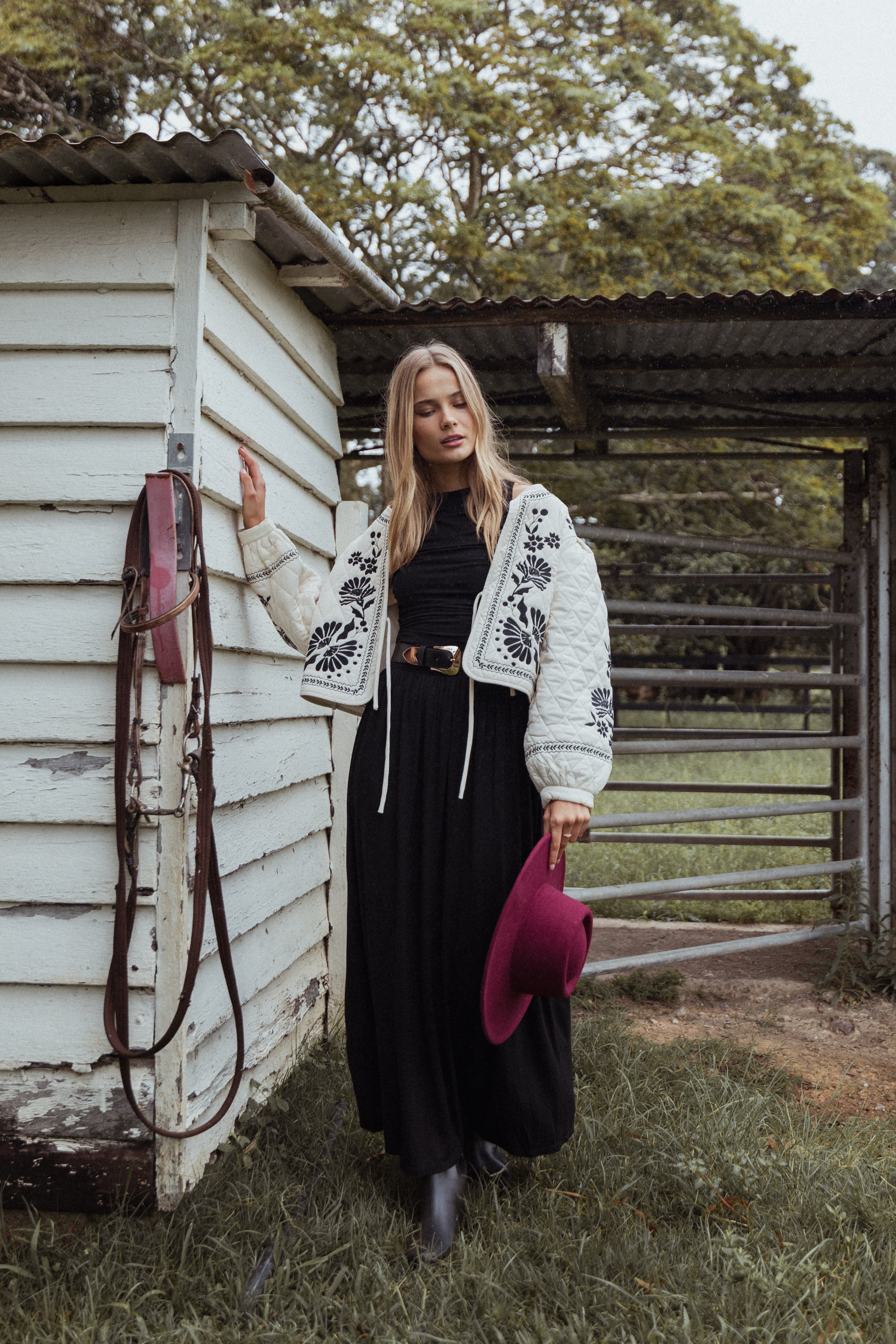 DETAILS This jacket is your new staple for effortless style and comfort, featuring a round neckline that frames your face beautifully and long sleeves that provide warmth on those chilly days. With its open front and delicate tie closure, you can easily layer it over your favourite outfits, transforming a simple look into something special.