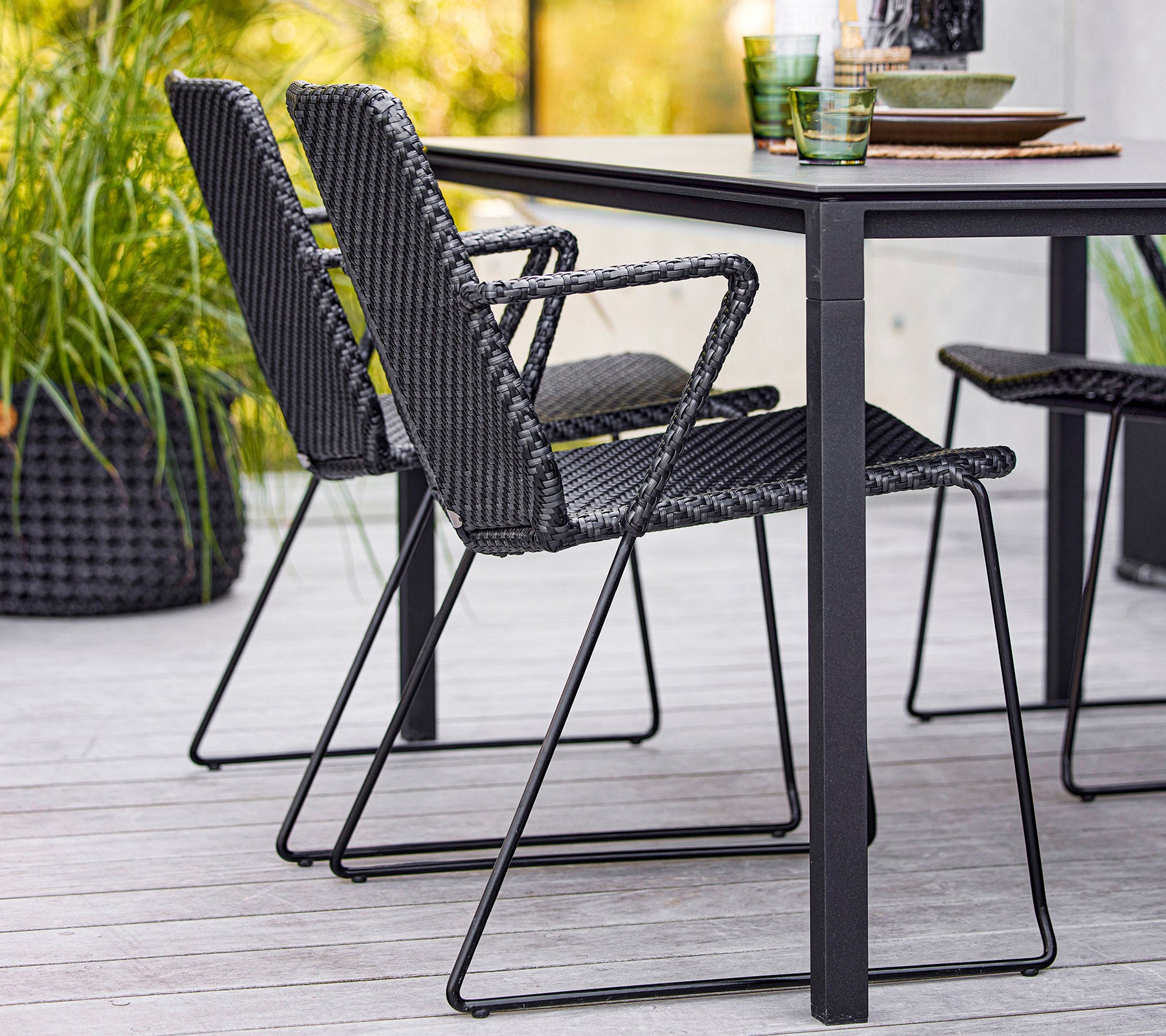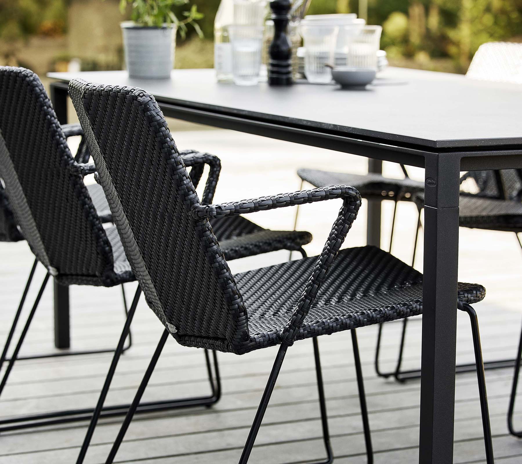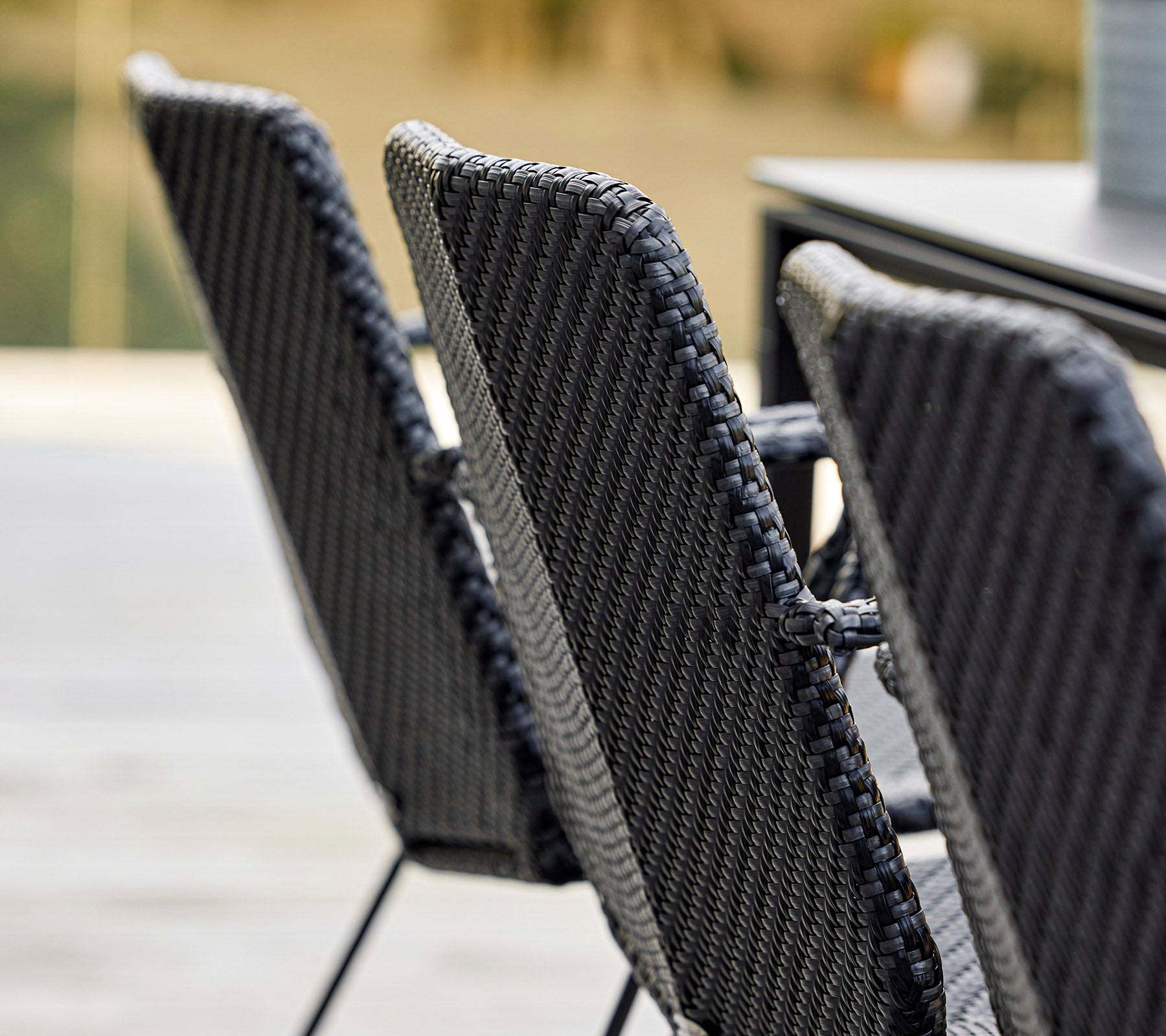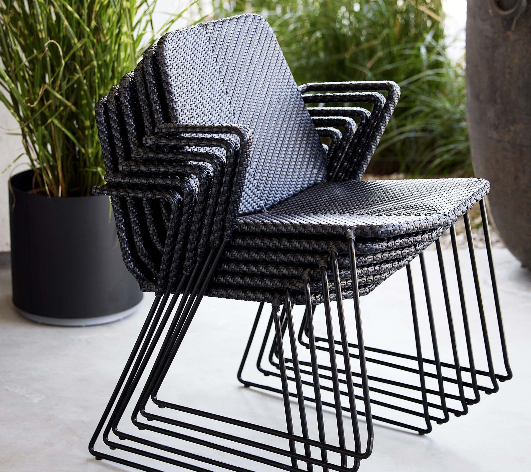 The modern and minimalist Vision armchair is designed by the dynamic design duo Strand+Hvass. Vision has a light appearance with a futuristic and clean design. Despite its light appearance, the armchair consists of a hot-dip galvanized steel frame with our durable and weather-resistant Cane-line Weave®. Designed to be easily stacked and stored away without taking up space. An eye-catching design feature is the double-woven pattern in a subtle colour mix, which makes the contours of the armchair stand out. For extra comfort it is possible to purchase matching cushions in soft Cane-line fabrics.
