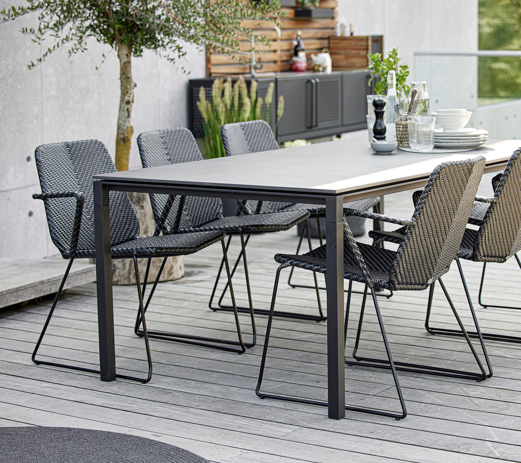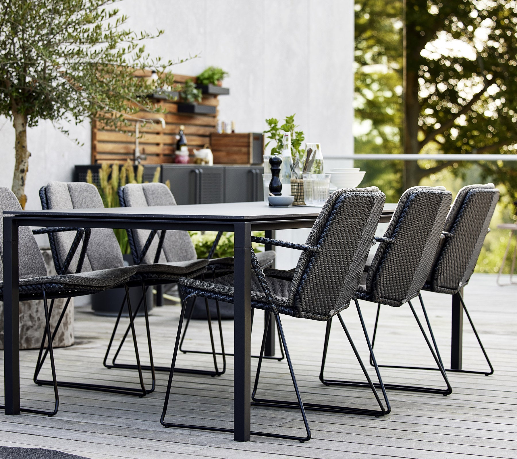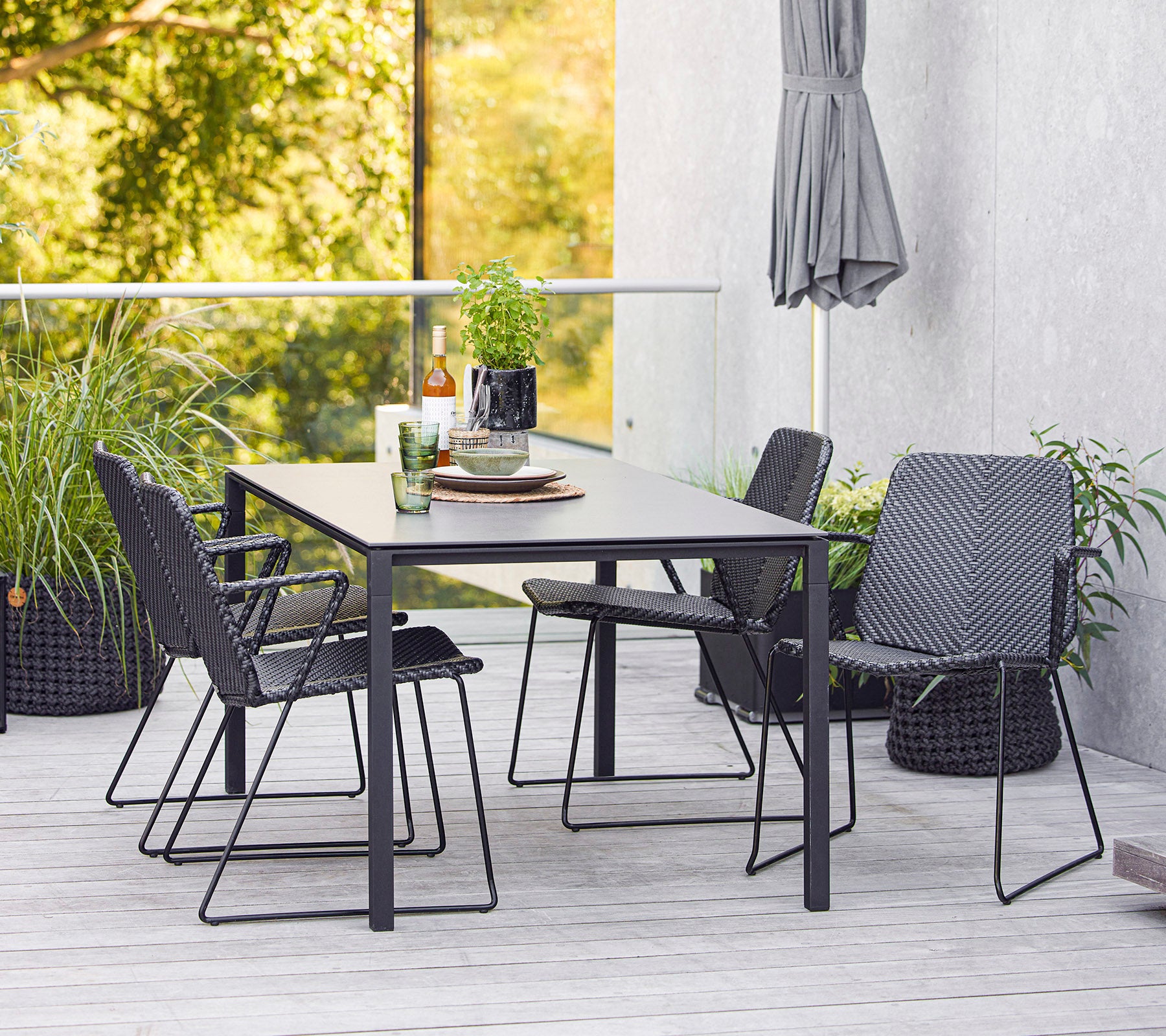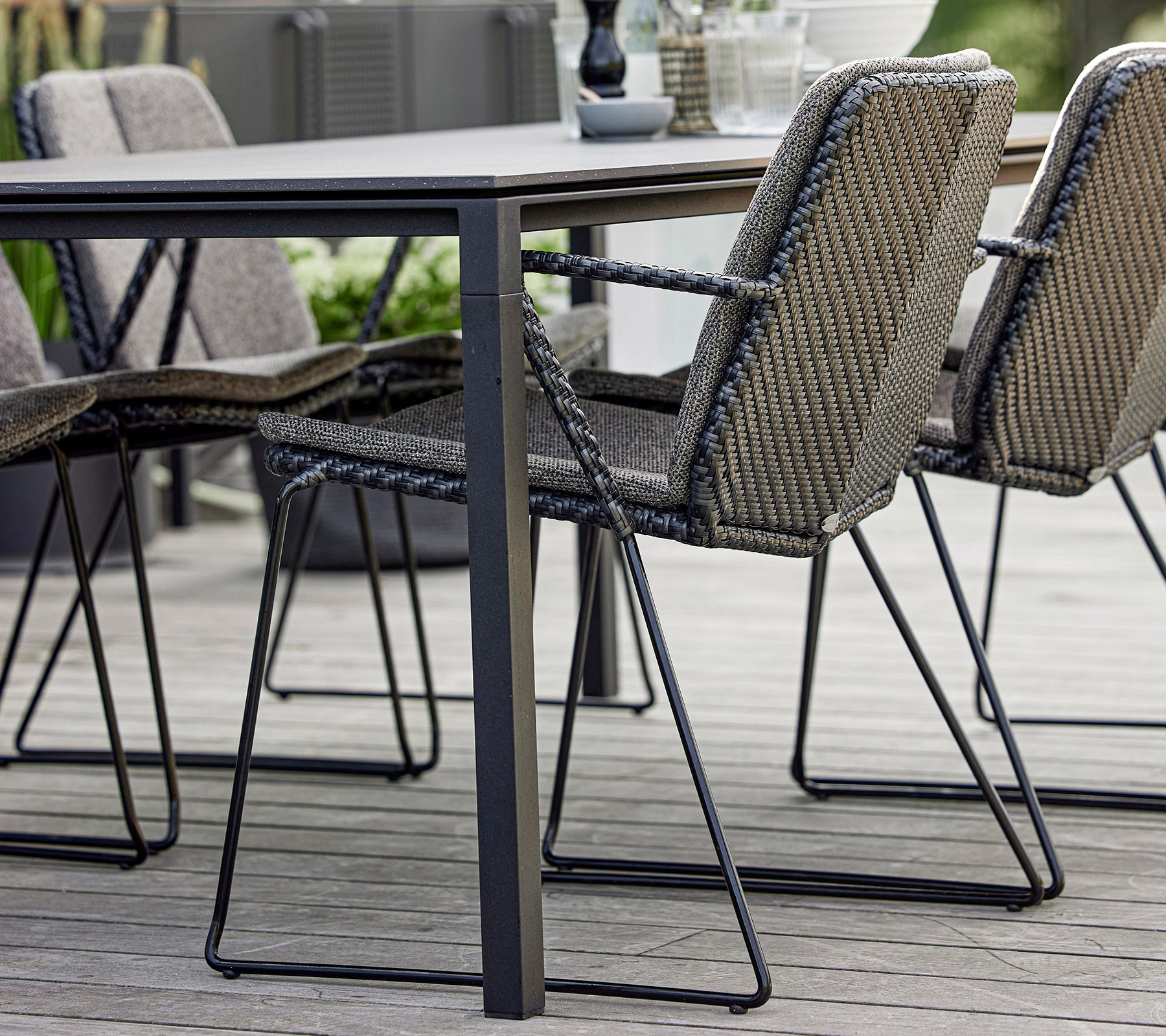 The modern and minimalist Vision armchair is designed by the dynamic design duo Strand+Hvass. Vision has a light appearance with a futuristic and clean design. Despite its light appearance, the armchair consists of a hot-dip galvanized steel frame with our durable and weather-resistant Cane-line Weave®. Designed to be easily stacked and stored away without taking up space. An eye-catching design feature is the double-woven pattern in a subtle colour mix, which makes the contours of the armchair stand out. For extra comfort it is possible to purchase matching cushions in soft Cane-line fabrics.