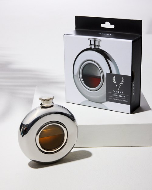 Bring your own beverage with this 5-ounce flask, perfect for carrying around your favorite whiskey or rum. The glass viewing window lets you keep an eye on when you need a refill, so you'll always keep your spirits up.