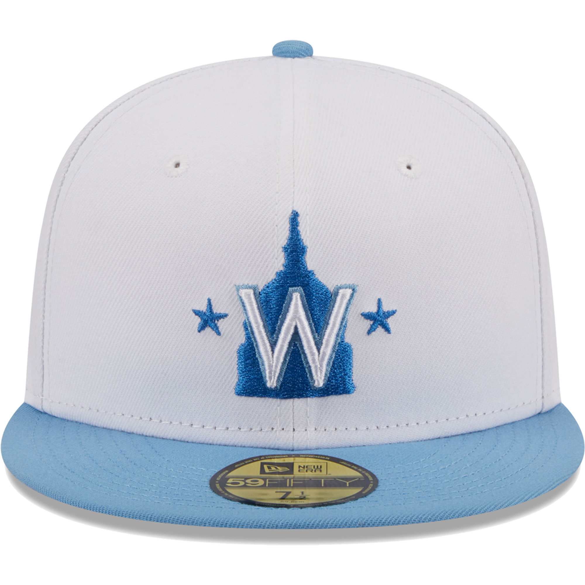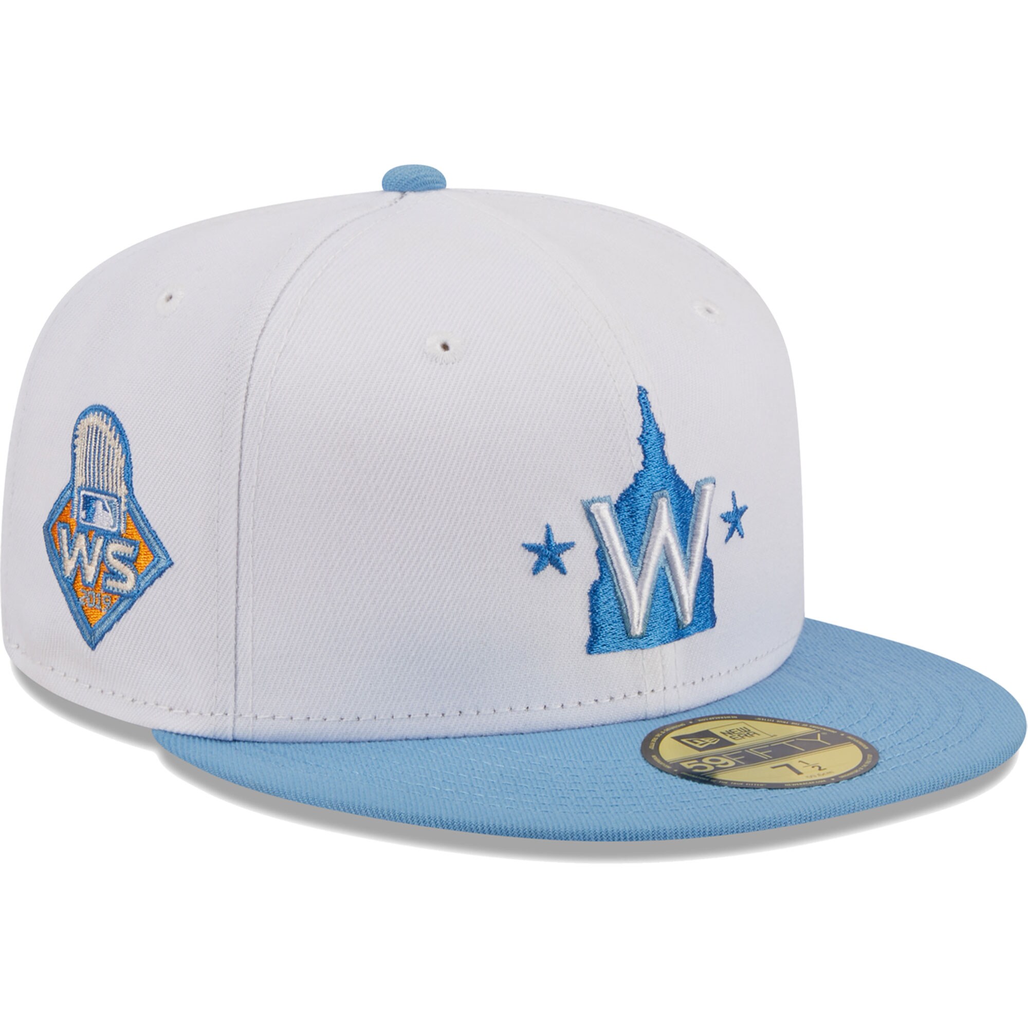 Elevate your game day ensemble with this Washington Nationals Sky 59FIFTY cap from New Era. This one-of-a-kind hat features bold Washington Nationals graphics on the crown and a special patch on the side. The fitted design of this cap will ensure you stay comfortable all game long.