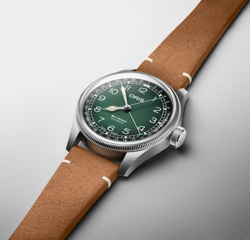 Oris Watch Big Crown Pointer Date Cervo Volante Green 01 754 7779 4067-Set. Together with Cervo Volante, Oris watches developed three different watch straps to complement this Big Crown watch.