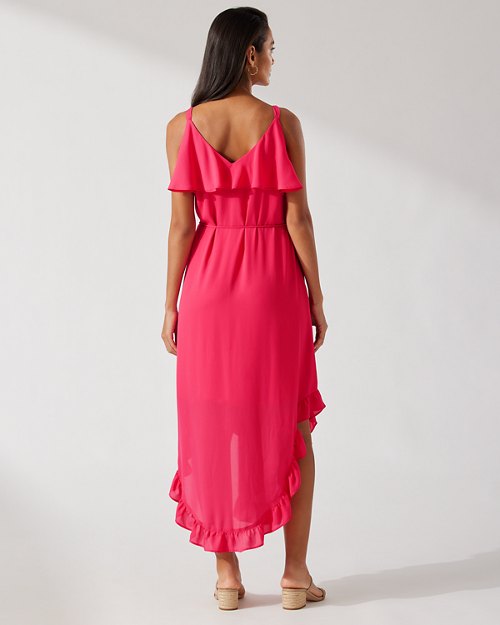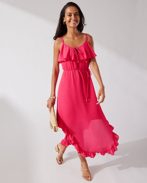 The drama is in the details with this ultra-feminine dress. You'll be tempted to twirl under the stars to really give these drapey ruffles their due. We say go for it— this dress deserves the spotlight, and so do you!