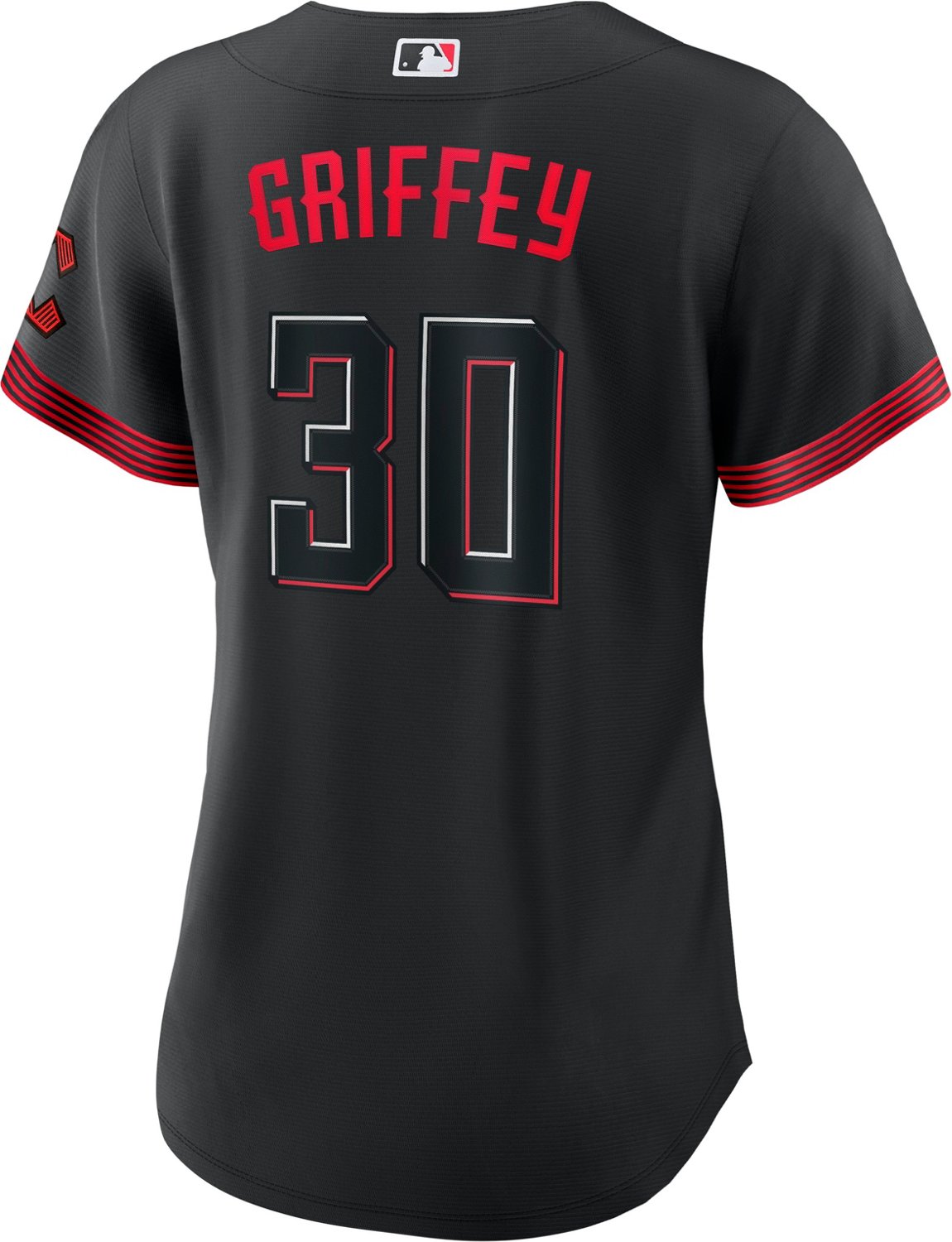 Cheer for your favorite star while wearing the Women's Cincinnati Reds Ken Griffey Jr. #30 City Connect Replica Jersey. Polyester offset mesh provides a light breezy feel perfect for tailgates. The printed jersey graphic shows your support for the Cincinnati Reds.