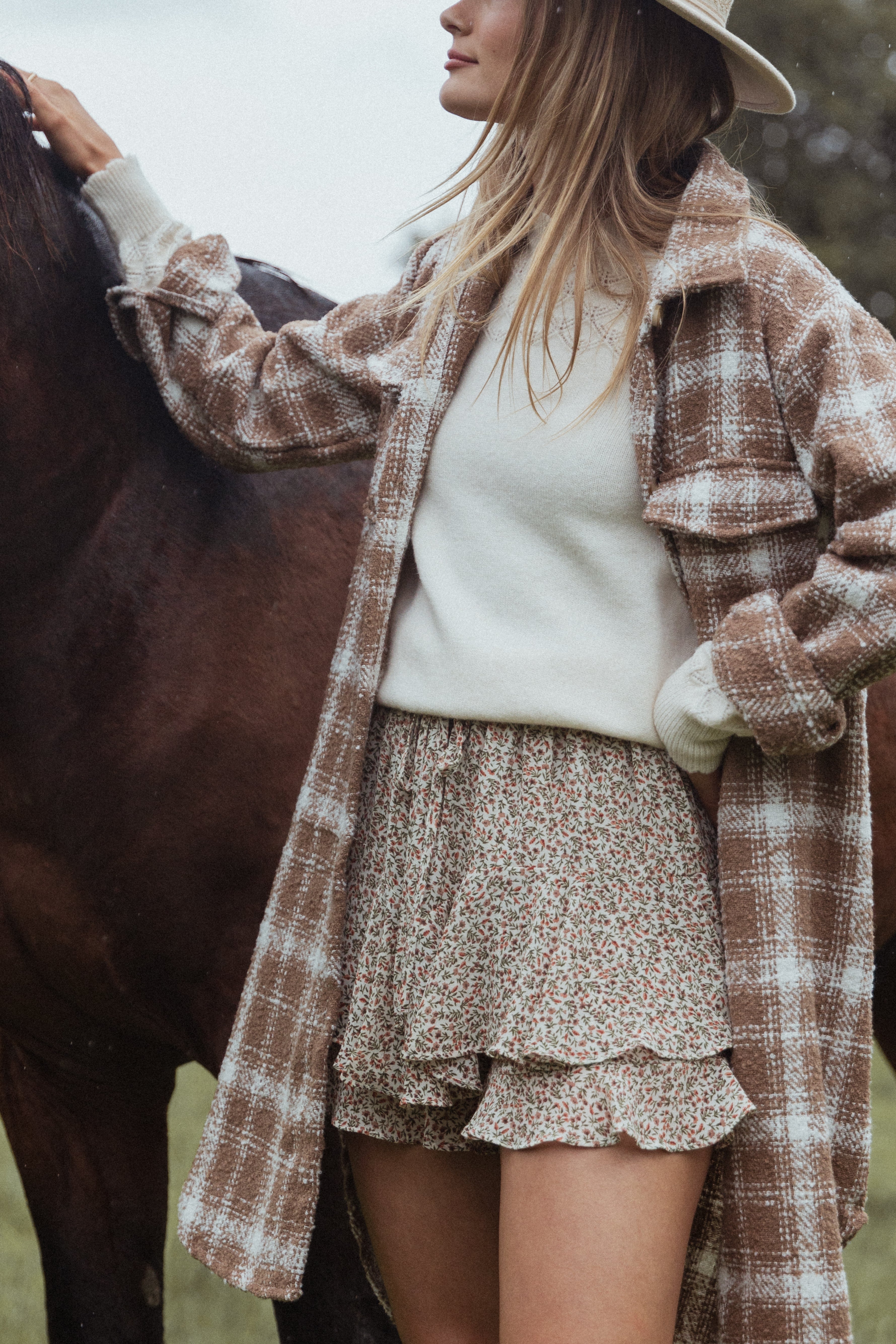| DETAILS Designed for those who love effortless elegance. The pull-on style offers easy wearability, while the tiered ruffle hem adds a playful touch that moves beautifully with every step. Adorned with a delicate floral print, this skort effortlessly captures the essence of modern femininity.