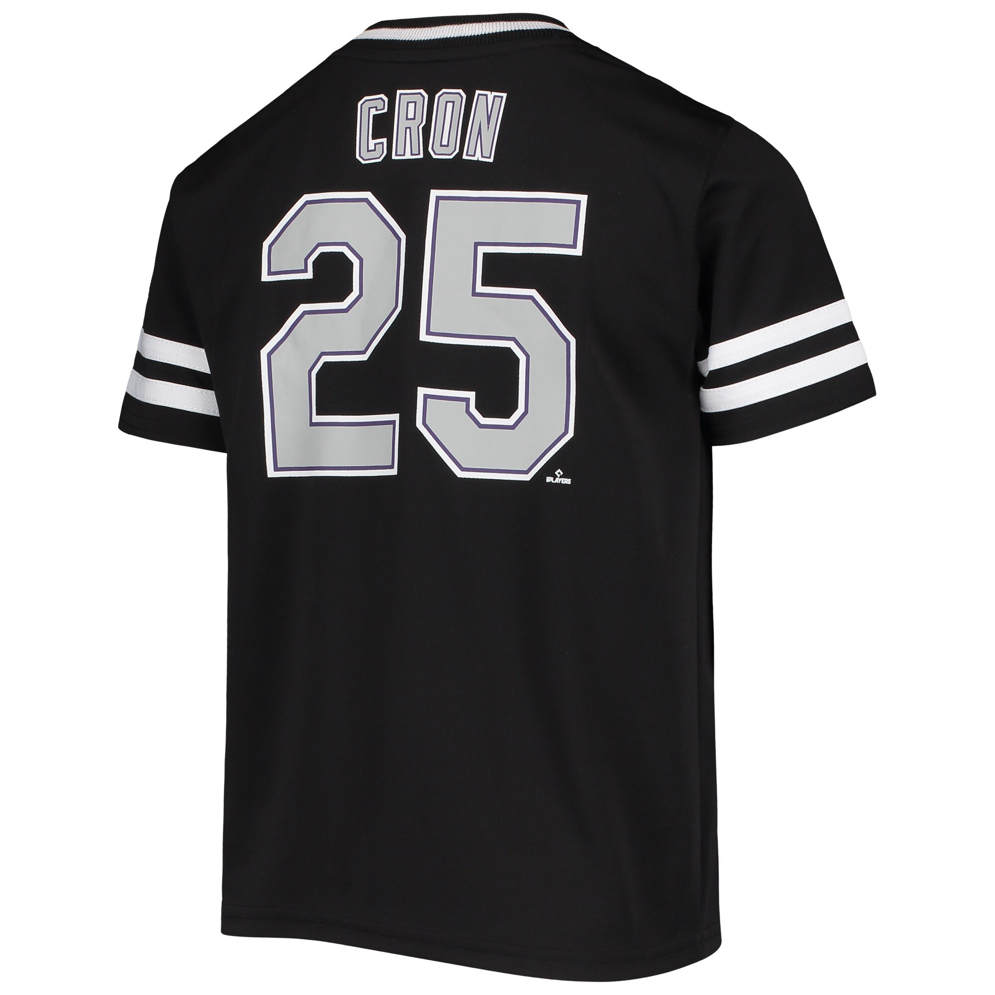 Help your kid show their love for the Colorado Rockies with this CJ Cron Player Logo jersey. Its polyester material and sewn-on stripes create a classic ballpark look. Best of all the printed Colorado Rockies graphics help your youngster feel like they can take the field.