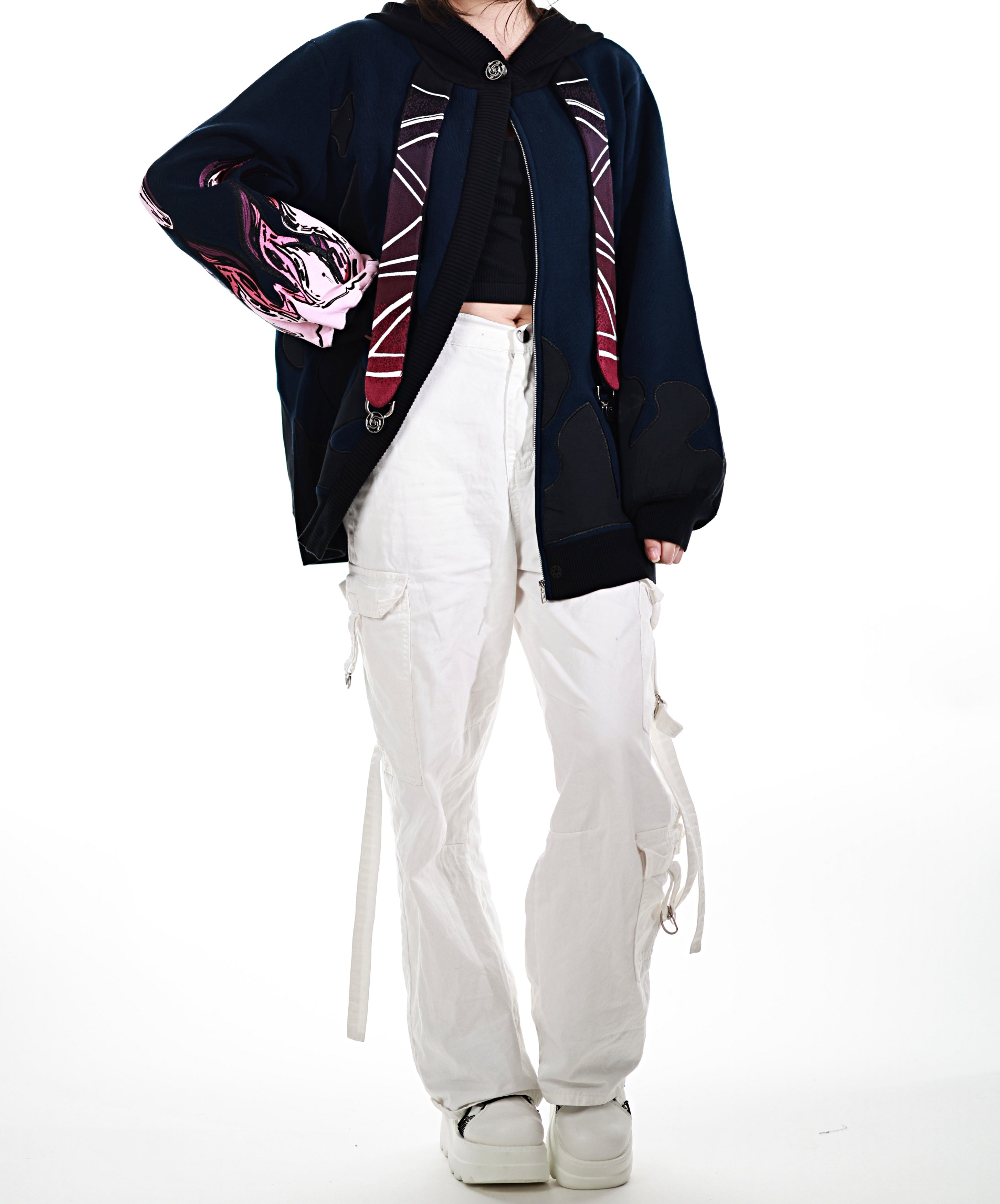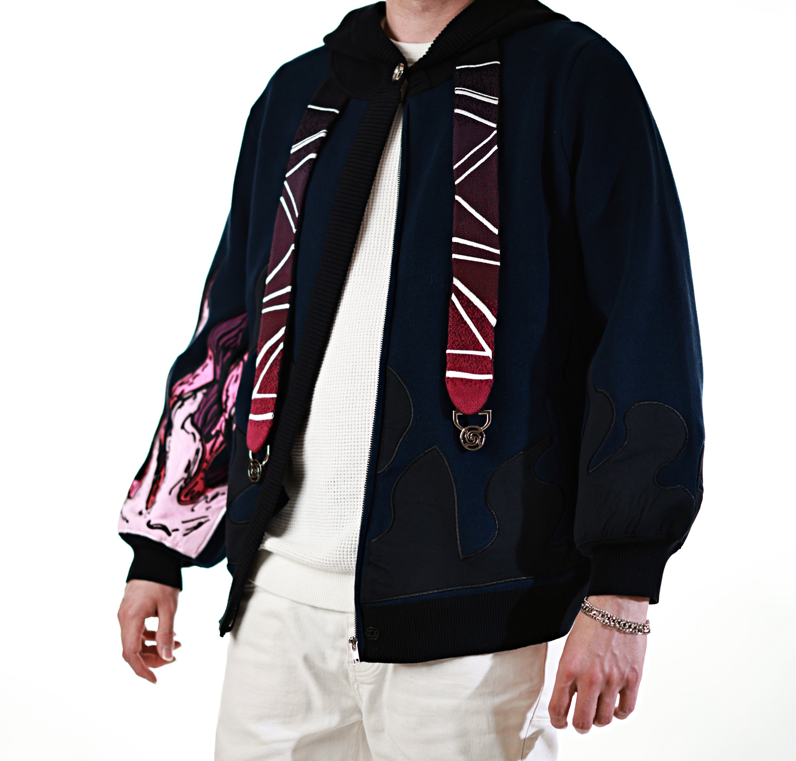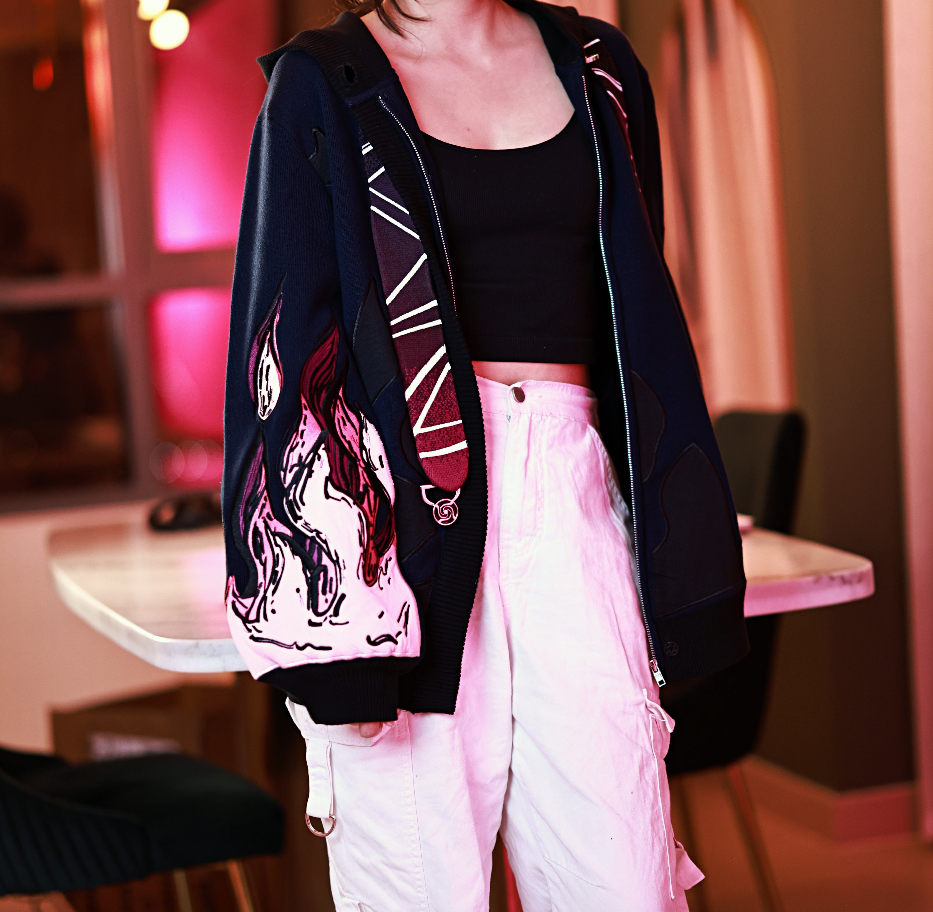 This whole collection features some of the most detailed embroidery we have ever made. The embroidery of Yuta's sword on the back of this Hoodie has over 120000 stitches and takes 12 hours to produce. Due to this high effort, this will be the only time this design will be offered for this low of a price. The design also features our new magnetic buttons and pendants that let you customize your hoodie and add your own touch! It comes with a set of button top pieces that can easily be interchanged with top pieces from other hoodies from this collection. Your will also be able to purchase complementary top pieces as an add on in the future to further customize these hoodies. The pieces are made from high quality metal and black resin. The fabric is made from the highest quality 100% cotton yarns. The design also features unique embroidered appliqué flame patterns on the body and sleeves that are inspired by Yuta's cursed energy. I also has a curved Zipper to give this design an even more unique look.