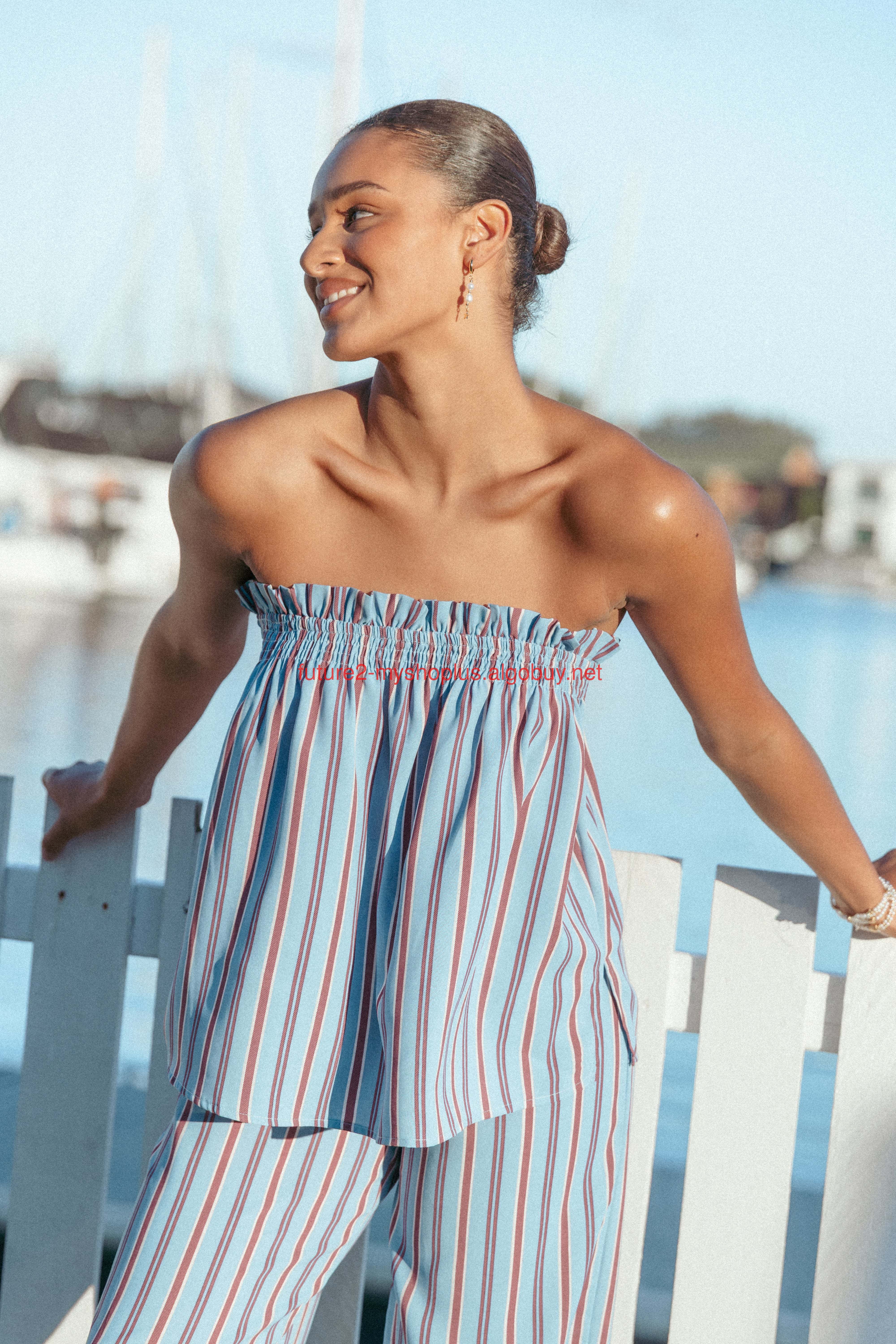 DETAILS Effortless and versatile, the Zemira Strapless Top in Blue Stripe is your go-to piece for laid-back yet elevated style. Designed with an elasticized shirred neckline, it effortlessly stays in place while providing all-day comfort.